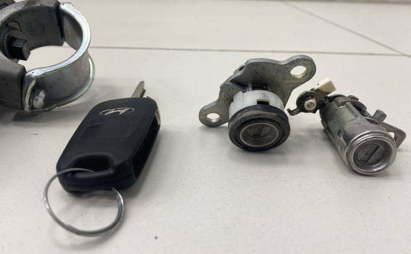 Оригинал. 1 ключ + вставка замка в левую дверь и вставка в крышку багажника. 6 пин. Деталь демонтирована с автомобиля Hyundai Solaris 2010-2017. Год выпуска: 2012. Цвет: Белый. Код цвета: PGU - CRYSTAL WHITE. Привод: Передний. Трансмиссия: Механика. Тип кузова: Седан. Модель двигателя: G4FA. Руль: Левый