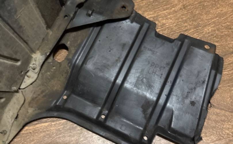 Защита двигателя антигравийная левая, всборе Mitsubishi Lancer 9, состоит из трех частей.