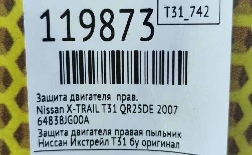 Защита двигателя Nissan X-TRAIL 2007 64838JG00A T31 QR25DE, правая