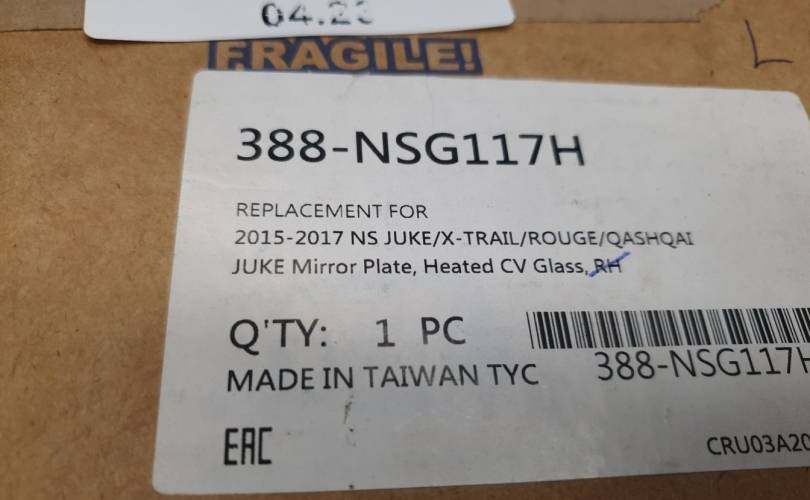 Зеркальный элемент левый для Nissan Qashqai J11E 2014-