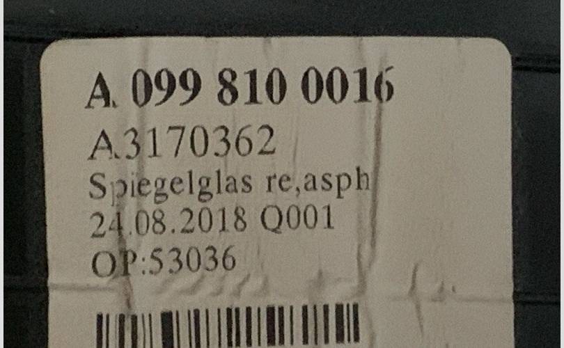 Зеркальный элемент Mercedes-Benz E-klasse 2016-2021 A0998101400 W213, правый