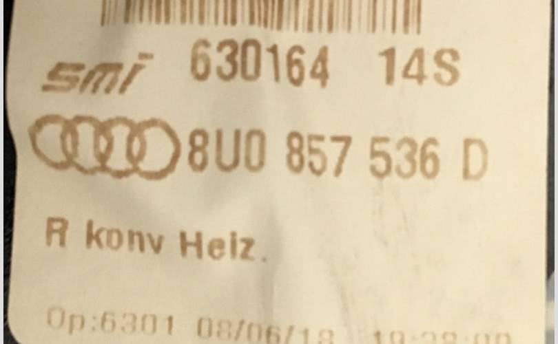 Зеркальный элемент панорамный с обогревом Audi Q3 2011-2018 8UO857536D 8U, правый