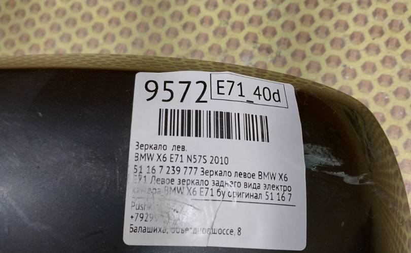 Зеркало BMW X6 2010 51167239777 E71 N57S, левое