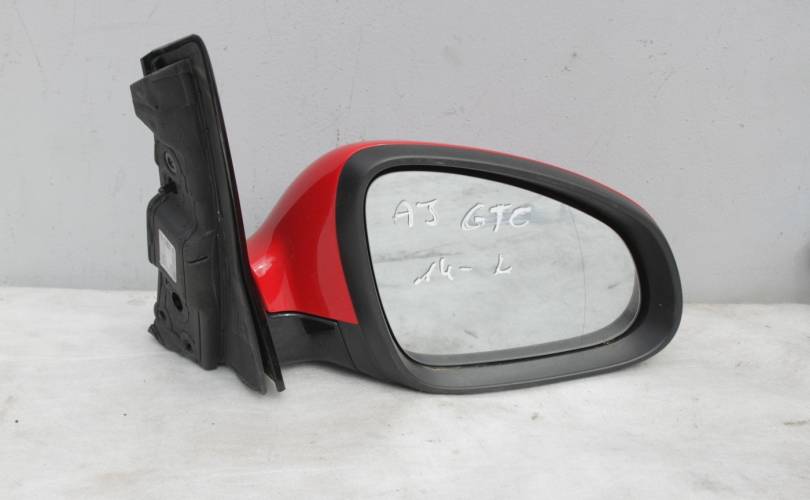 Зеркало заднего вида правое, в сборе, электрическое 5 контактов (без электроскладывания), б/у оригинал в хорошем состоянии. Цвет: красный. Подходит для автомобиля Opel Astra J GTC (Астра Джей ГТС) в 3-х дверном кузове (трехдверка, купе, купэ) с 2011 по 2016 год выпуска.