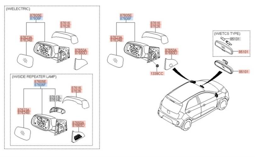 Зеркало Kia Picanto Morning TA