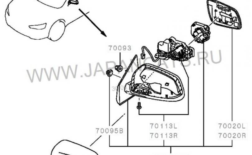 Зеркало правое электрическое Mitsubishi Lancer X (2007—2010)