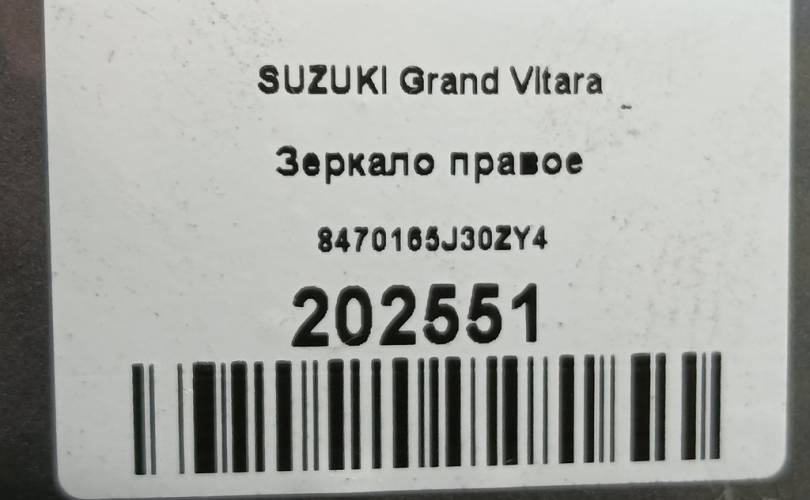 Зеркало правое на SUZUKI Grand Vitara 8470165J30ZY4