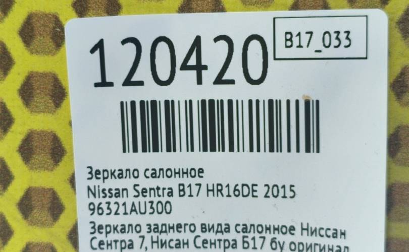Зеркало салонное Nissan Sentra 2015 96321AU300 B17 HR16DE