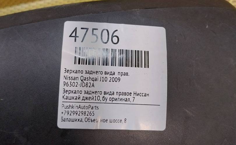 Зеркало заднего вида Nissan Qashqai 2009 96302JD82A J10, правое
