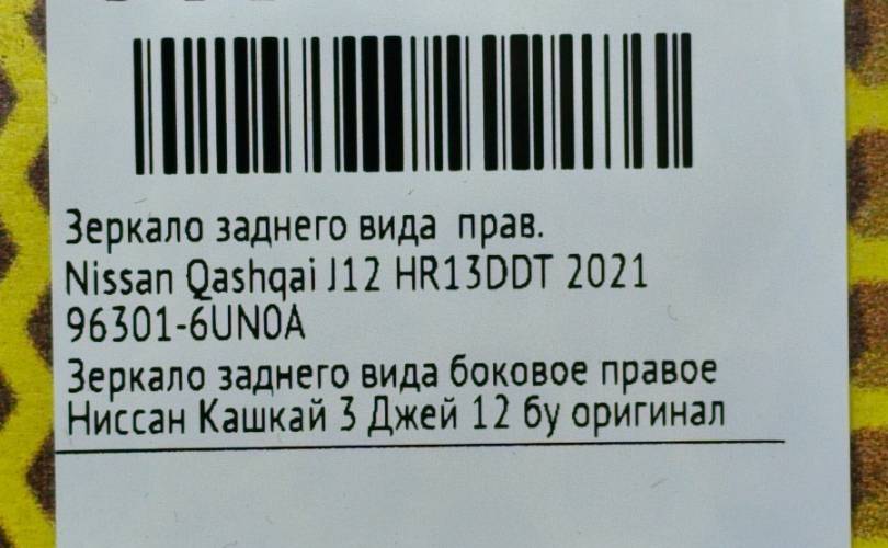 Зеркало заднего вида Nissan Qashqai 2021 963016UN0A J12 HR13DDT, правое
