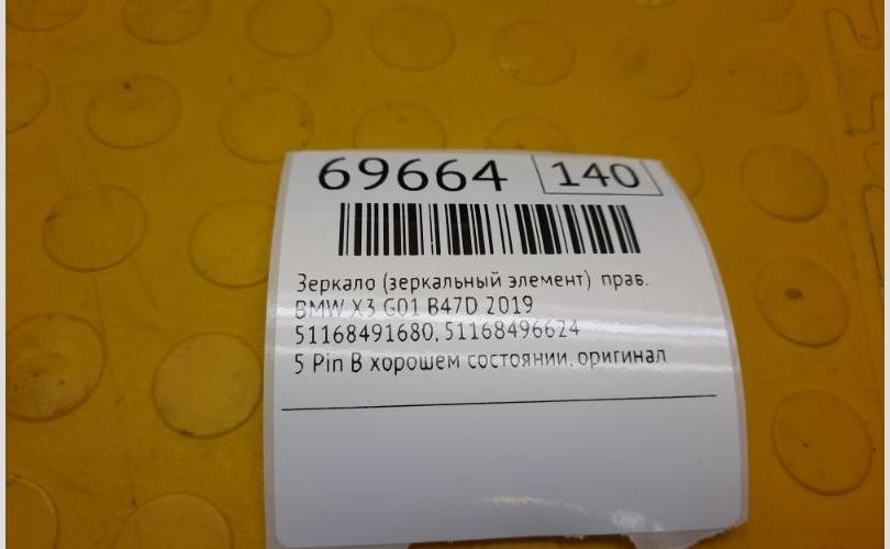 Зеркало (Зеркальный элемент) BMW X3 2019 51168491680 G01 B47D, правое