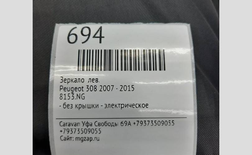 Зеркало (Зеркальный элемент) Peugeot 308 2007 - 2015 8153NG, левое
