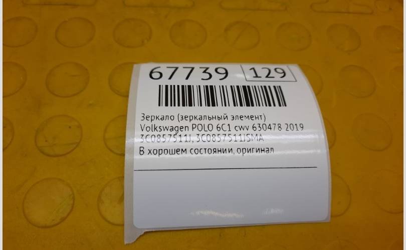 Зеркало (Зеркальный элемент) Volkswagen POLO 2019 3C0857511JSMA 6C1 CWV 630478